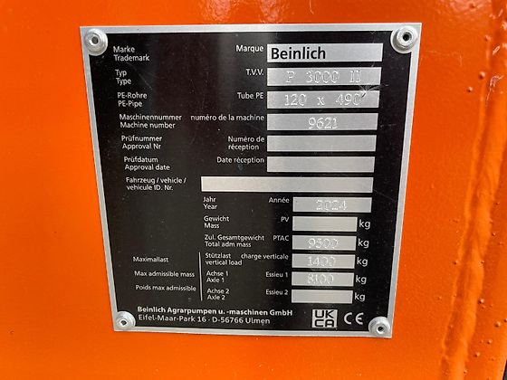 | Nieuwe Primus 3000 II met: – PE-slang 490 meter, 120 mm, constante wandsterkte – 108 mm aansluiting – hydraulische steunpoot – hysraulische stutten – hydraulische lift – hydraulische draaikrans – luchtgeremde as – banden 19.0/45 – 17 – verkeersverlichting – inclusief NL-kenteken |